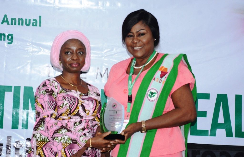 First Lady of Lagos State, Dr. (Mrs) Ibijoke Sanwo-Olu, presented with a plaque of appreciation by the President, National Association of Dermatologists (NAD), Dr. Grace Chita Okubo