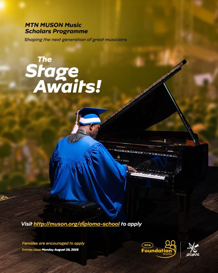 The MTN Foundation, in partnership with the Musical Society of Nigeria (MUSON), has announced the commencement of applications for the 2025/2026 MTN MUSON Music Scholars Programme. This initiative reaffirms MTN Foundation’s commitment to nurturing young Nigerian musical talent and contributing to the growth of the arts and culture sector in Nigeria.