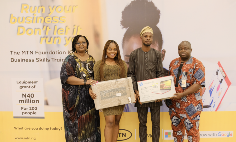 Also giving his appreciation during the event, Abidoye Olaniyan, a content writer and one of the grant recipients said, “The training was very impactful. We learned a lot of things from Meta, Microsoft, and Google. Today I am getting a laptop from the MTN Foundation, and I am very grateful as this will help scale my business.”