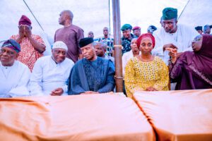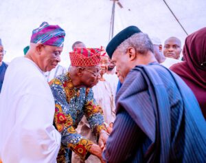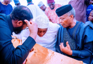 The VP joined dignitaries at the event including former President Olusegun Obasanjo and the former Governor of Ogun State, Chief Segun Osoba. The Deputy Governor of Ogun State, Engr Noimot Salako-Oyedele was also present as special prayers were observed after the burial.