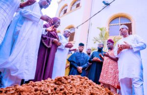 Accompanied by his wife, Mrs Dolapo Osinbajo, the VP was received by his first son, Mr. Segun Ajibola, SAN, at the premises of the Islamic Mission for Africa – an institution established by the former World Court Judge and where he was also interred.