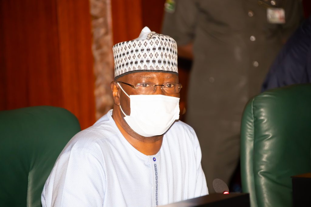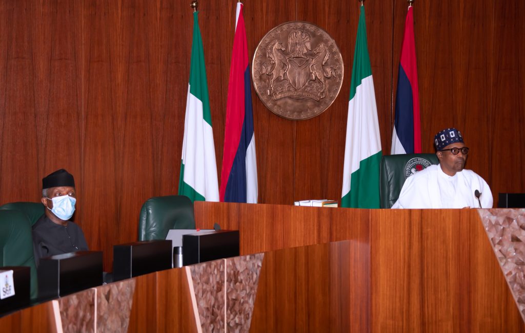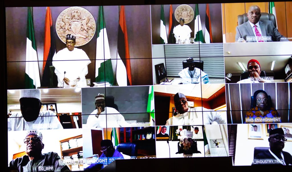 Nigeria at 60 theme, TOGETHER, with the logo was projected and unveiled virtually on the 12 by 20 feet screen at the Council Chambers, before the commencement of the e-Federal Executive Council (FEC) meeting presided over by President Buhari.