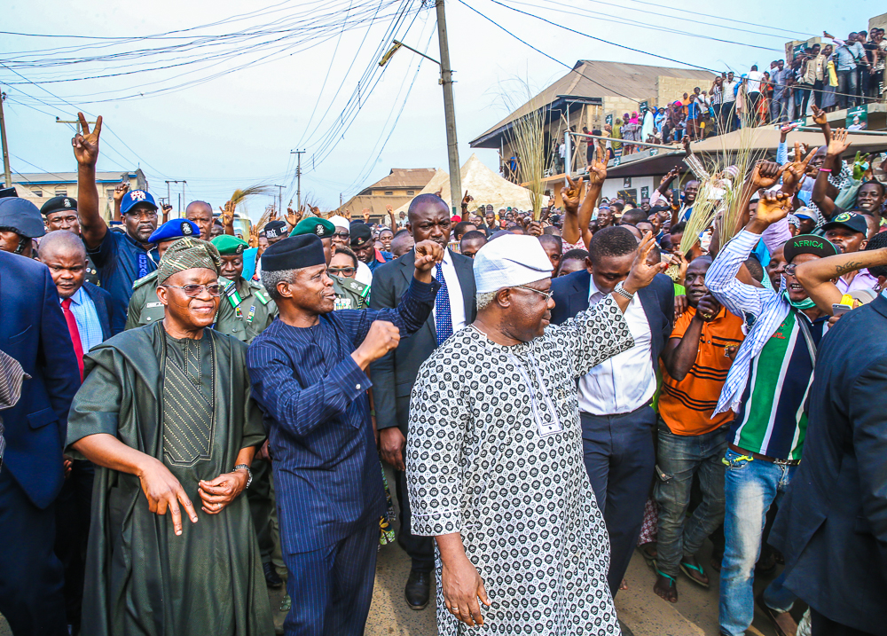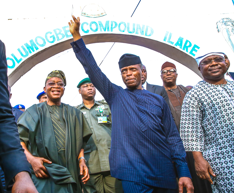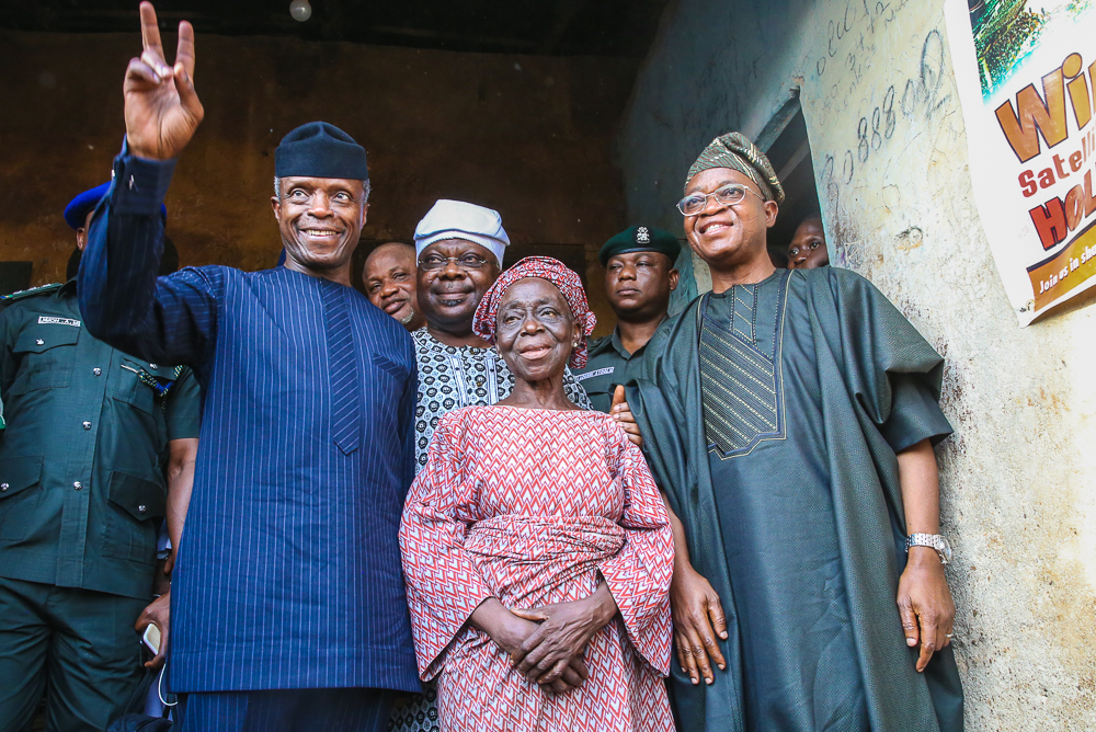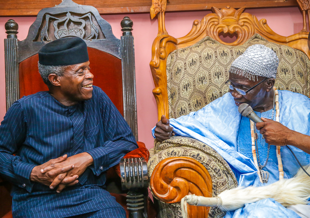 Vice President Yemi Osinbajo, SAN, today continued Family Chats in Ife, Osun State, accompanied by the Governor of Osun, Gov. Gboyega Oyetola. Where he first paid a courtesy visit to the Ooni of Ife, Adeyeye Ogunwusi, visited some families and paid courtesy visit also to the Ogunsua of Modakeke, Chief Moses Oladejo Oyediran.
