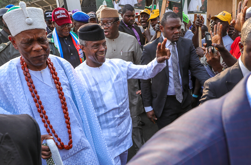 Vice President Yemi Osinbajo, SAN, at the Palace of the Olomuo of Umuo-Ekiti, Oba Noah Okinbaloye II today. He was accompanied by the Gov. Kayode Fayemi of Ekiti State. He also visited the family of late Ayoleke Adu, in Umuo-Ekiti on Tuesday, January 22, 2019.