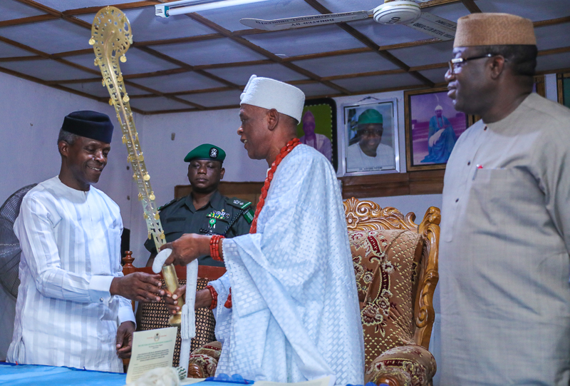 Osinbajo pays a courtesy visit to the Olomuo of Umuo-Ekiti, Oba Noah Okinbaloye II