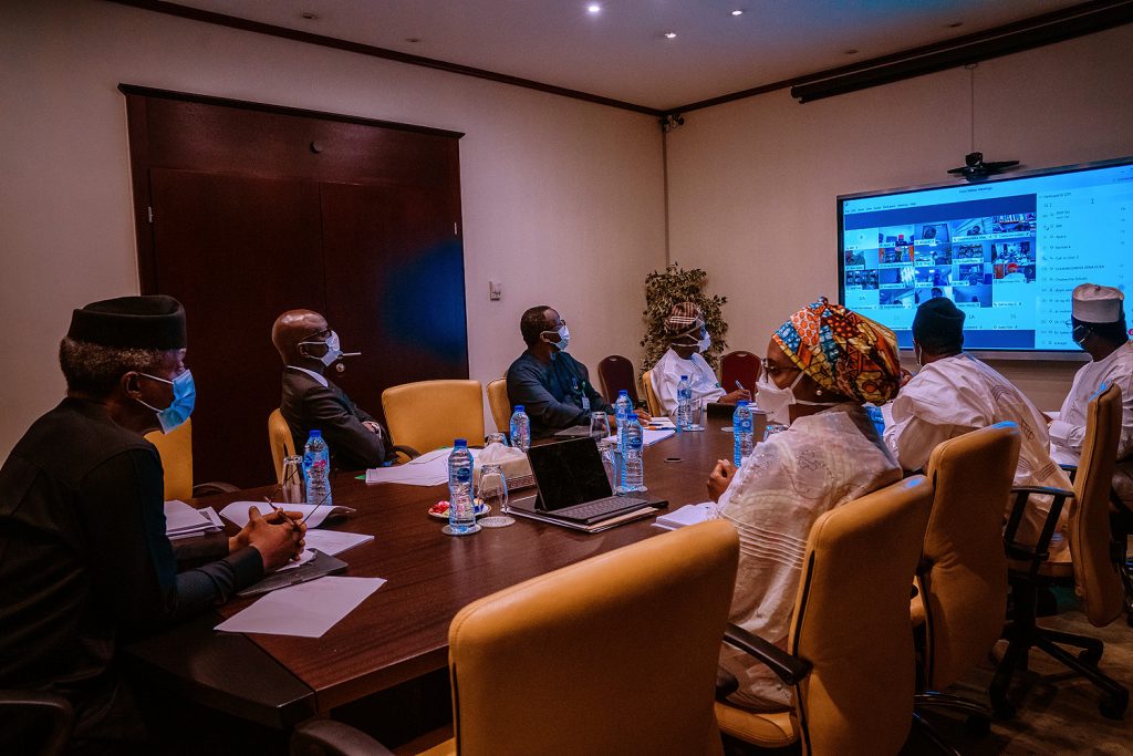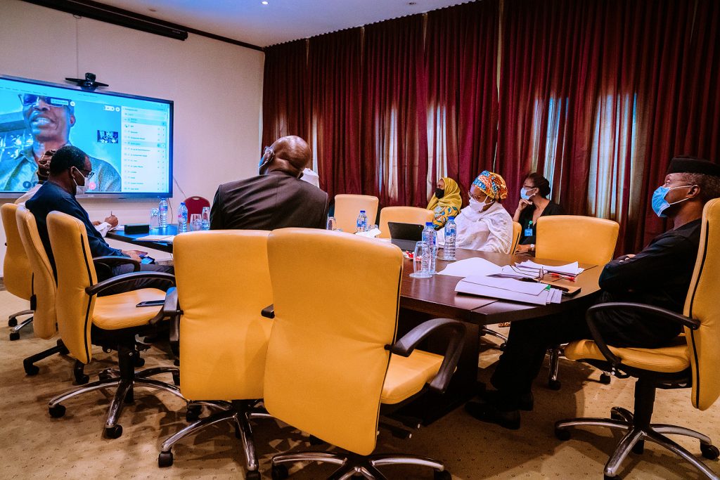 Vice President Yemi Osinbajo, SAN, chairs the Economic Sustainability meeting along with members of Presidential Economic Advisory Council via Video Conference.