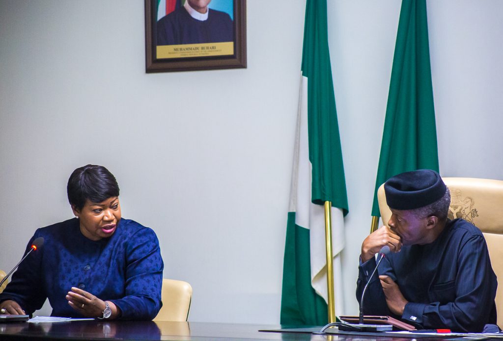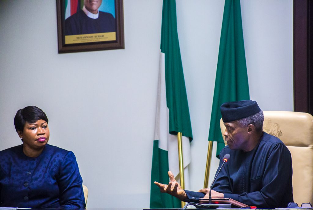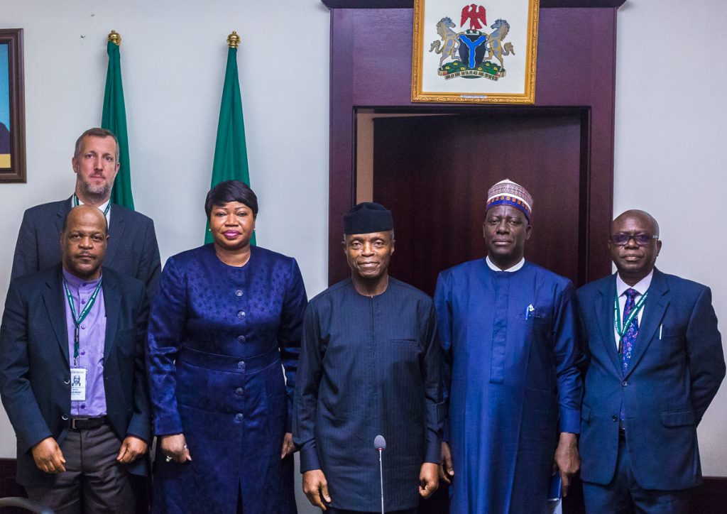 Vice President Yemi Osinbajo, SAN, receives in audience a delegation from International Criminal Court (ICC) led by Chief Prosecutor ICC, Ms Fatou Bensouda, at the State House, Abuja on Monday, October 14, 2019.