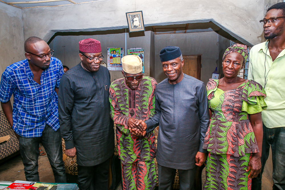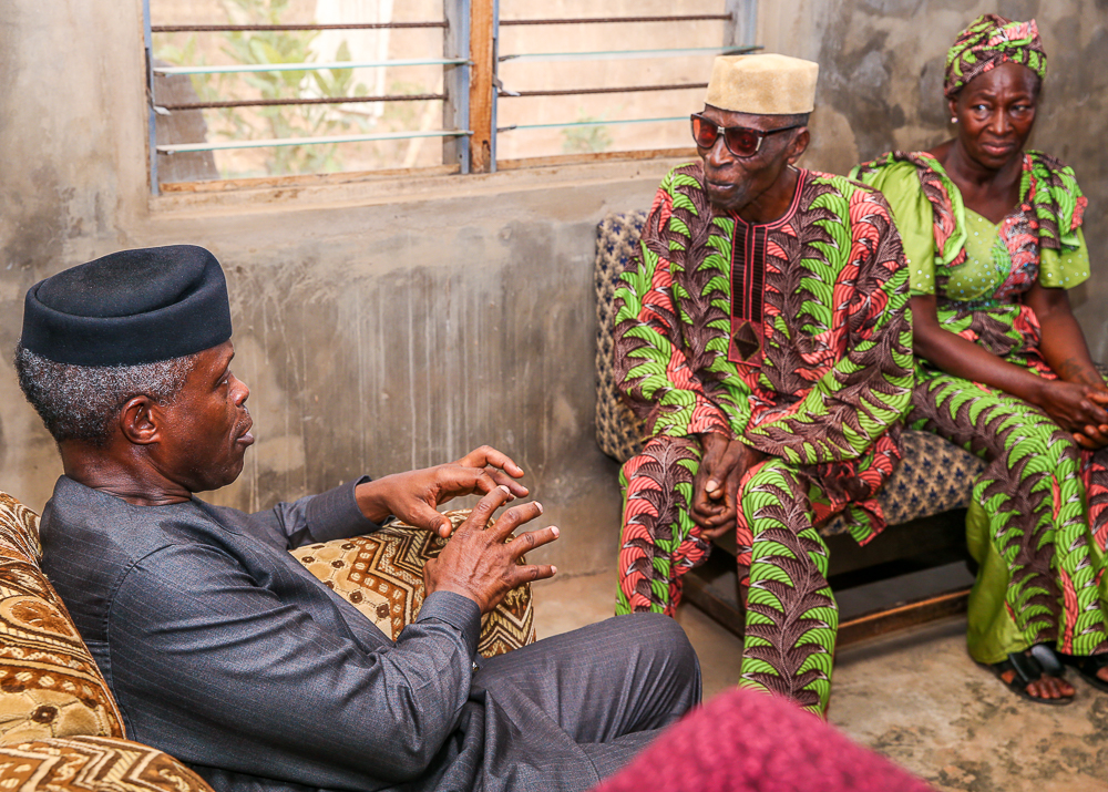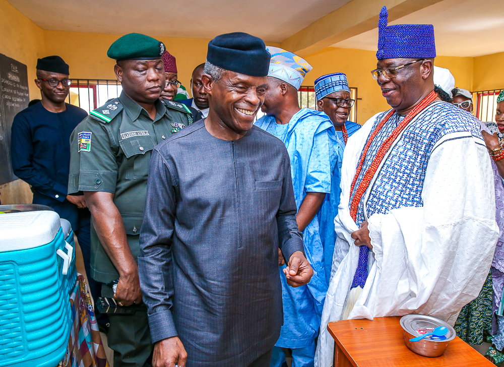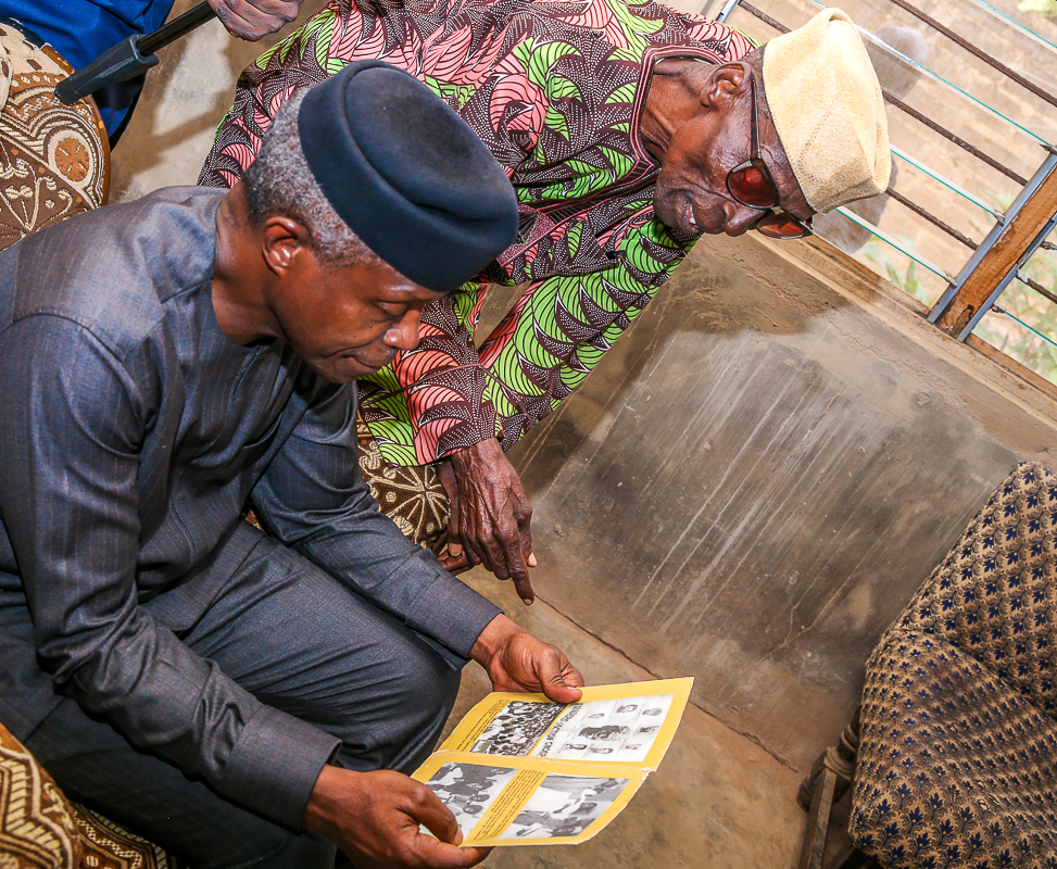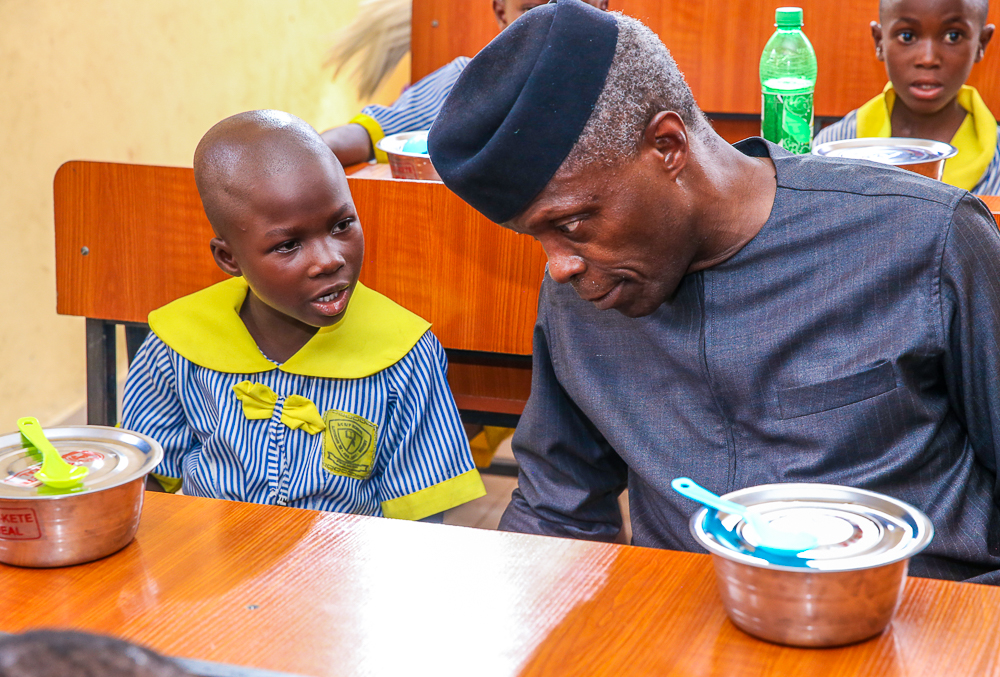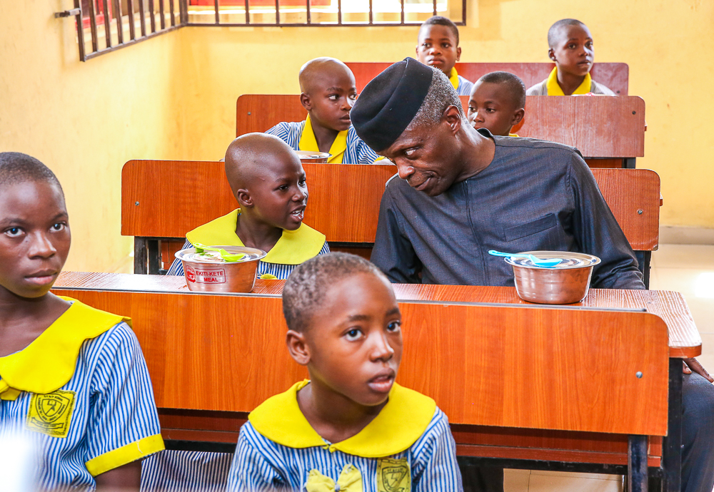 Vice President Osinbajo, SAN, visits Ekiti State for the launch of School Feeding Program in Ekiti State, where he ate lunch & interacted with the children of St. Michael’s African Primary School, Ado-Ekiti. He also had a family chat hosted by the family of Pa Olajide Olabode, age 87, who was at a time a driver to Chief Obafemi Awolowo, Gen. Adeyinka Adebayo, Chief Samuel Ladoke Akintola, etc on Tuesday, May 7, 2019.