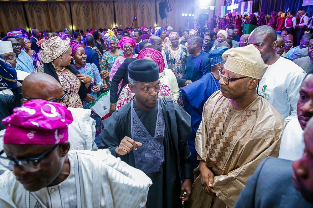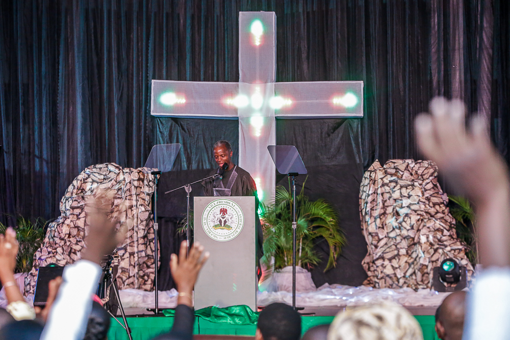 Vice President Yemi Osinbajo, SAN, and his wife, Mrs. Dolapo Osinbajo, attends a Special Interdenominational Service of Thanksgiving at the Statehouse Conference Center today in Abuja on Sunday, March 31, 2019.