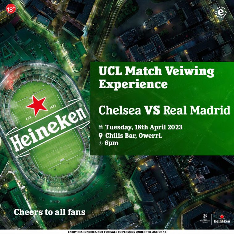 The Heineken UCL Owerri viewing experience will kick off by 6pm on Tuesday, April 18th 2023.