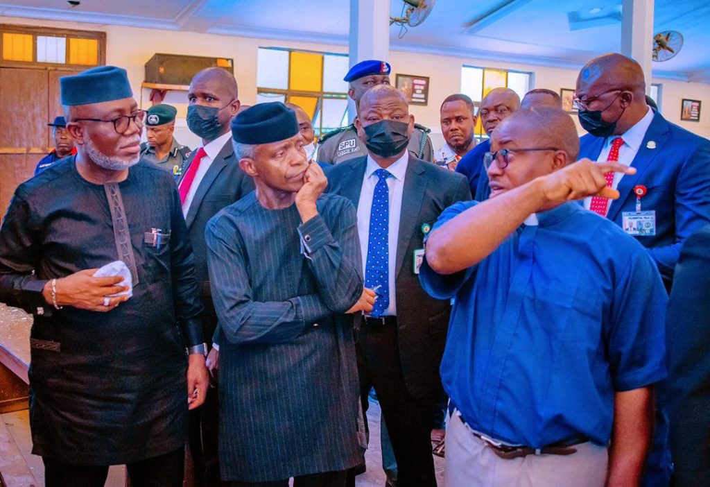 | *VP on condolence visit to Ondo State, stops at site of attack, palace & hospital *On way to Abuja airport, assists victim of one-car road accident |