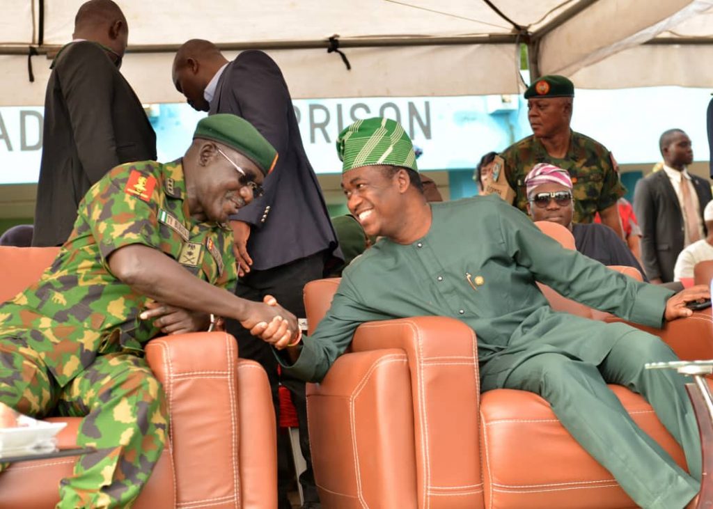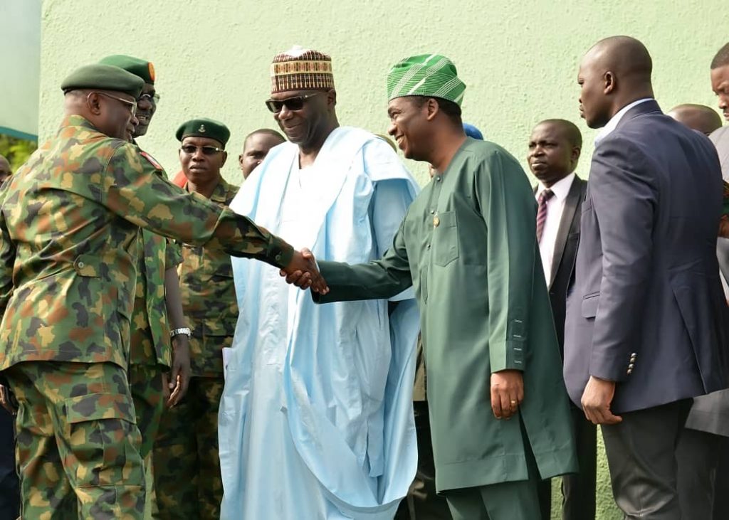R-L: Representative of Lagos State Governor and Deputy Governor, Dr. Obafemi Hamzat; Kwara State Governor, Mr. AbdulRahman AbdulRazak, Chief of Army Staff, Lt. Gen. Tukar Buratai and an Army Chief