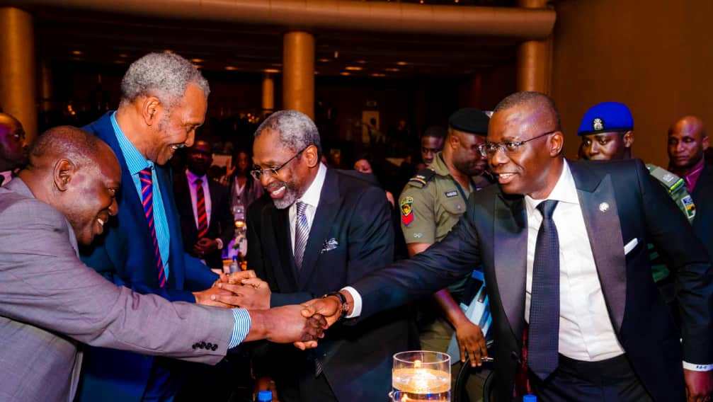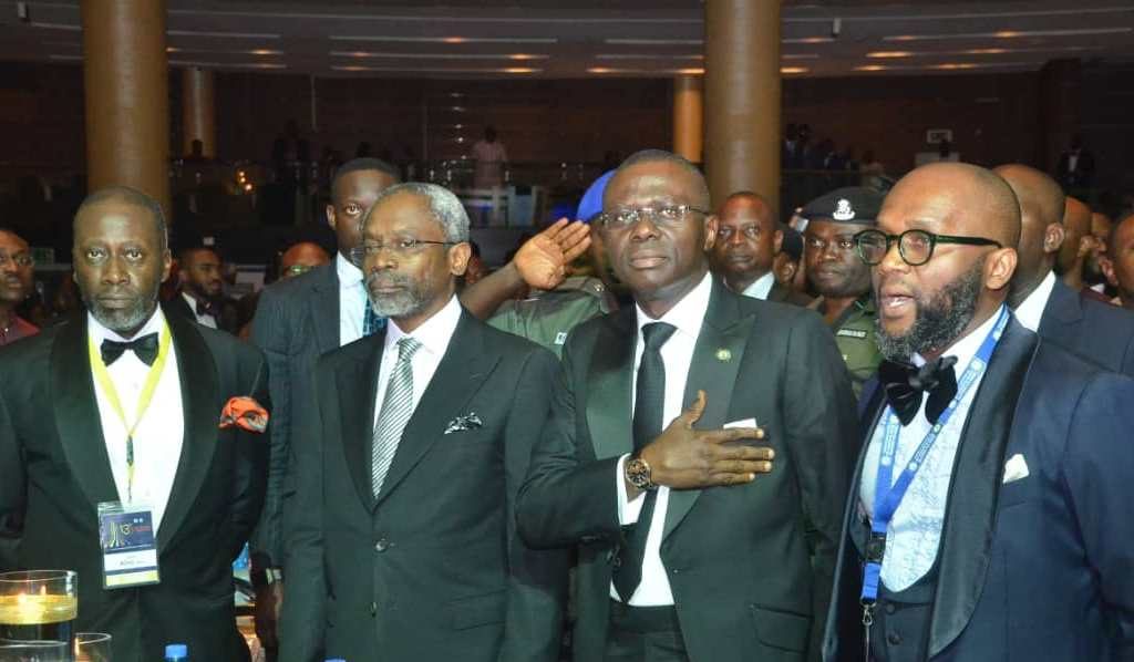 L-R: Chairman, Organizing Committee, 13th Annual Business Law Conference, Dr. Adeoye Adefulu; Lagos State Governor, Mr. Babajide Sanwo-Olu; State Chairman, Nigerian Bar Association (NBA), Mr. Sani Adio (SAN), Speaker, House of Representatives, Rt. Hon. Femi Gbajabiamila and representative of Acting Chief Judge of the Federation, Hon. Justice Bode Rhodes-Vivour