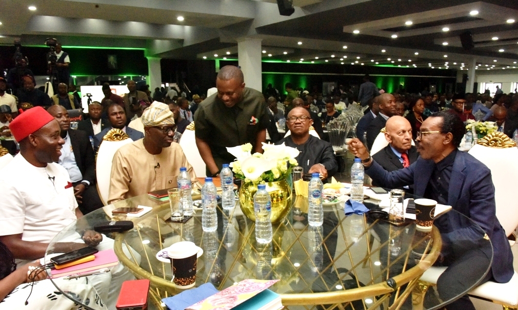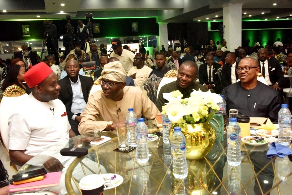 R-L: Former Central Bank Governor of Nigeria, Prof. Charles Soludo; Lagos State Governor, Mr. Babajide Sanwo-Olu; Convener, The Platform Nigeria and Senior Pastor, Covenant Christian Center, Pastor Poju Oyemade and former Governor of Anambra State, Mr. Peter Obi