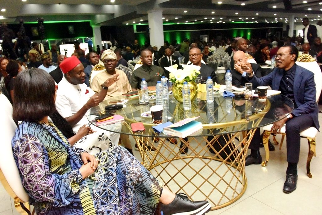 L-R: Former Central Bank Governor of Nigeria, Prof. Charles Soludo; Lagos State Governor, Mr. Babajide Sanwo-Olu; Convener, The Platform Nigeria and Senior Pastor, Covenant Christian Center, Pastor Poju Oyemade; former Governor of Anambra State, Mr. Peter Obi; Michael Dingman Chair in Global Strategy and Entrepreneurship, University of Maryland, United States, Mr. Anil Gupta and Managing Director/CEO, Financial Derivatives Company Limited, Mr. Bismarck Rewane