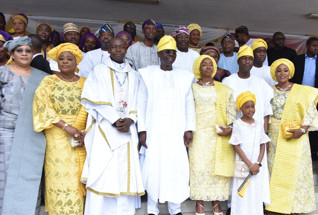 L-R: Women Leader, APC Southwest, Chief (Mrs) Kemi Nelson; former Commissioner for Women Affairs and Poverty Alleviation, Hon. Lola Akande; Presiding Chaplain, Chapel of Christ The Light, Alausa, The Very Rev. Ayo Olu Oyadotun; Lagos State Governor, Mr. Babajide Sanwo-Olu; his wife, Dr. Ibijoke; Deputy Governor, Dr. Obafemi Hamzat; his wife, Oluremi and others