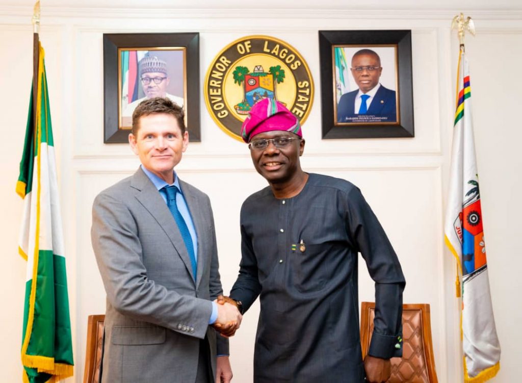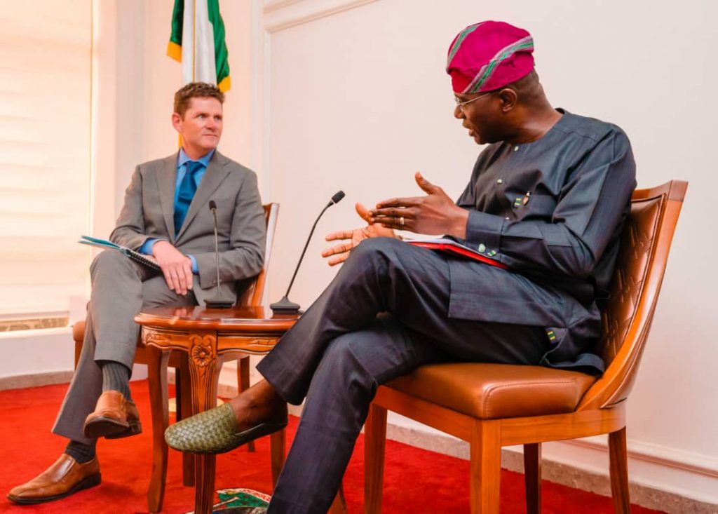 Lagos State Governor, Mr. Babajide Sanwo-Olu (right), with President, Global Growth and Opportunity, Bill and Melinda Gates Foundation, Mr. Roger Voorhies