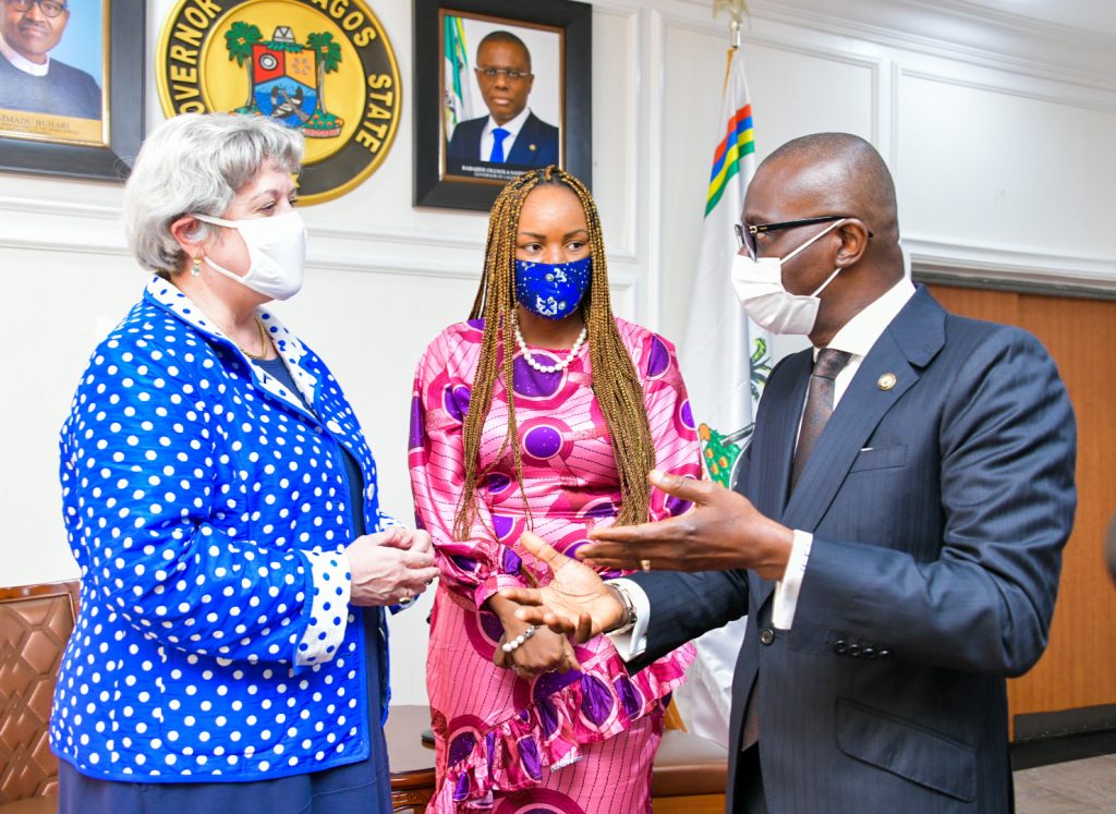 -R: United States Ambassador to Nigeria, Mary Beth Leonard; Special Adviser to the Governor on SDGs & Lagos Global, Mrs Solape Hammond and Lagos State Governor, Mr. Babajide Sanwo-Olu