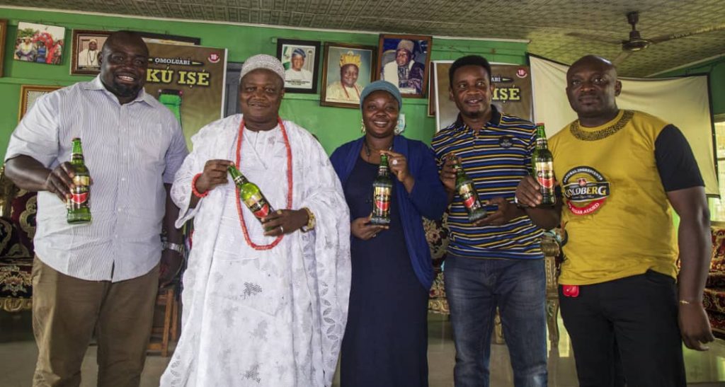 L-R: Regional Trade Marketing Manager, Akure, Nigerian Breweries Plc, Oluwaseyi Oyedeji; Larooye II Ata Oja of Osogbo Land, Oba Jimoh Oyetunji Olanipekun, Wife of Ata Oja of Osogbo Land, Olori Kafayat Adedoyin Oyetunji Olanipekun; Area Sales Manager, Akure, Nigerian Breweries Plc, Martins Airekholo; Operations, Oracle Experience Limited, Ibe C. Echezolam