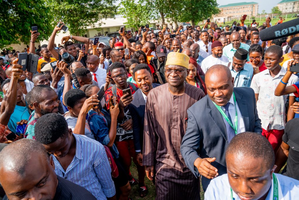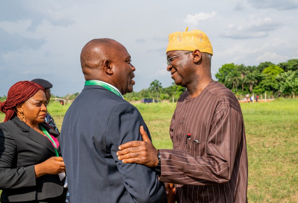 Hon. Minister of Power, Works & Housing, Mr Babatunde Fashola, SAN(right) inspecting one of the transformers installed at the Solar Generation Plant of the 1MW Solar Power Plant at the Federal University Ndufu Alike Ikwo, Ebonyi State as part of the Federal Government’s Energizing Education Project on Monday 20th May 2019.