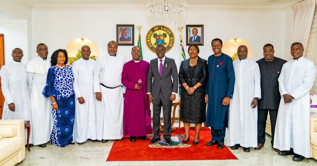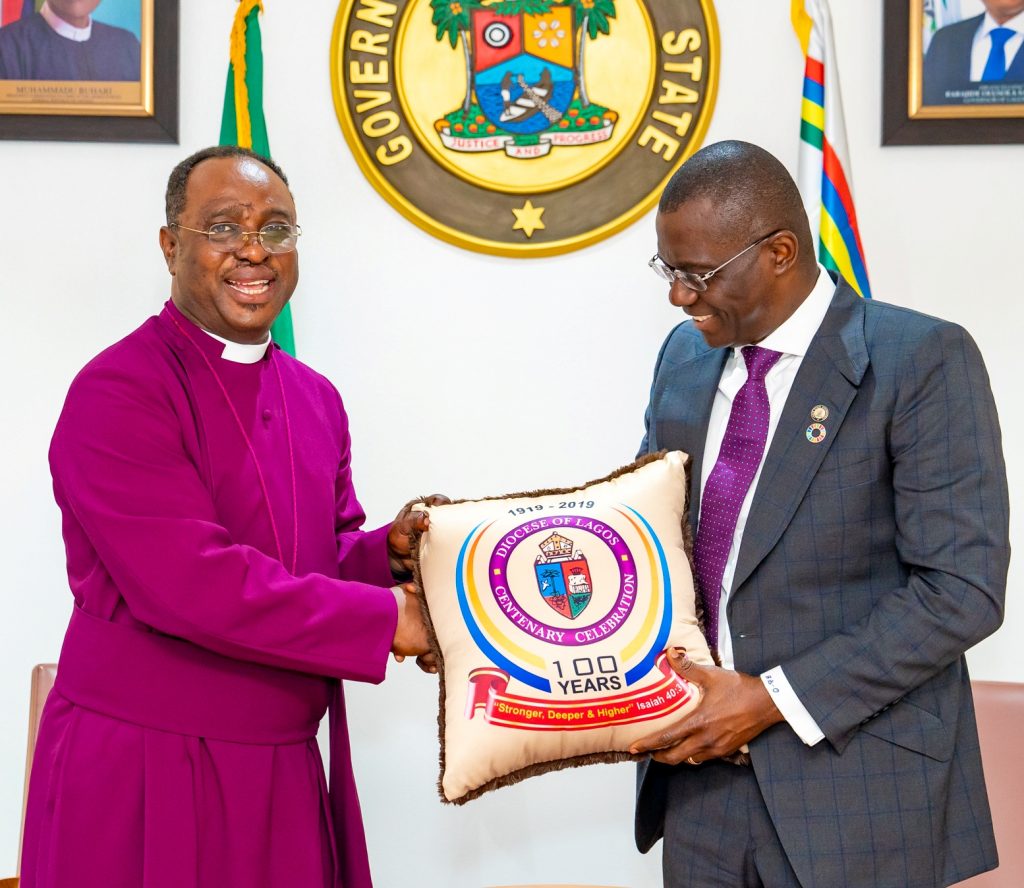 Governor Sanwo-Olu receives Diocesan Bishop of Lagos, Rt. Rev. Olumakaiye at Lagos House, Marina on Wednesday, October 23, 2019.
