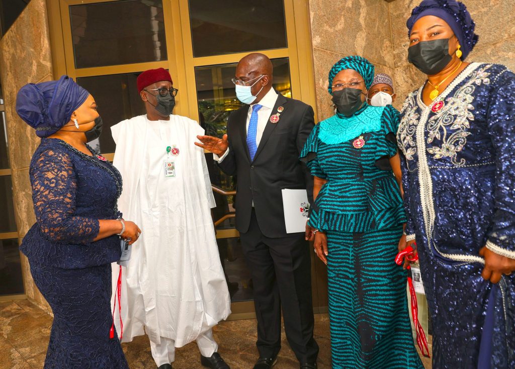 PRESIDENT BUHARI INAUGURATES NEW NNPC BOARD & MAGT 10. L-R; Chairman of the NNPC Board, Senator Chuba Okadigbo, Chief Executive Officer Mele Kolo Kyari, Minister of State Petroleum, Sylva Timipre, Barrister Constance Harry Marshal and Mrs Lami O. Ahmed during the Inauguration of the NNPC Board and Management in State House Abuja. PHOTO; SUNDAY AGHAEZE. JAN 7TH 2022