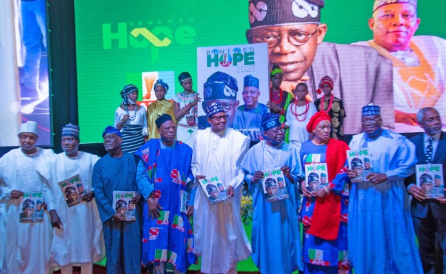 In handing the APC flag to the candidate at the tumultuous occasion, President Buhari said the country needed a man like Asiwaju Bola Tinubu, urging the party faithful to campaign on issues and the abilities of our candidate and his running mate, Senator Kashim Shettima.