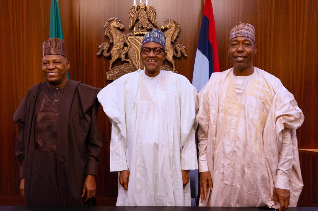 PRESIDENT BUHARI RECEIVES IN AUDIENCE APC VP CANDIDATE SEN SHETTIMA .-From Left; APC Vice Presidential Candidate, Sen Kashim Shettima, President Muhammadu Buhari, Borno State Governor, Prof Babagana Zulum during an audience at the State House Abuja. PHOTO; SUNDAY AGHAEZE. JUL;Y 20TH 2022