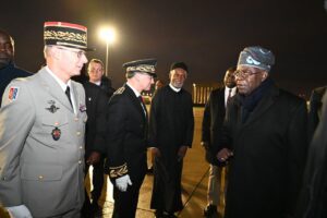Touching down at Orly Airport around 5:10 p.m., President Tinubu was welcomed with full military honours by the French Republican Guard, marking a ceremonial start to his visit.