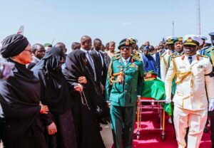 President Tinubu, along with Vice President Kashim Shettima, President Umaru Sissoco Embaló of Guinea-Bissau, Prime Minister of Niger, Ali Lamine Zeine, former President of Niger, Issoufou Mahamadou, and former Vice President Yemi Osinbajo, received the casket of the late president at the foot of the aircraft.