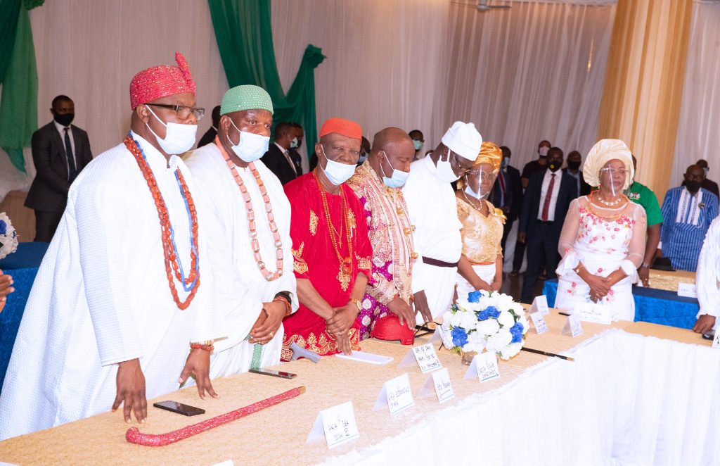 PRESIDENTIAL PARLEY WITH SOUTH SOUTH STAKEHOLDERS MEETING 11. Cross Section of Traditional Rulers and Stakeholders of the South South States during the Presidential Parleys with South South Stakeholders held at the Government House Port Harcourt, Rivers State. PHOTO; SUNDAY AGHAEZE. NOV 24 2020