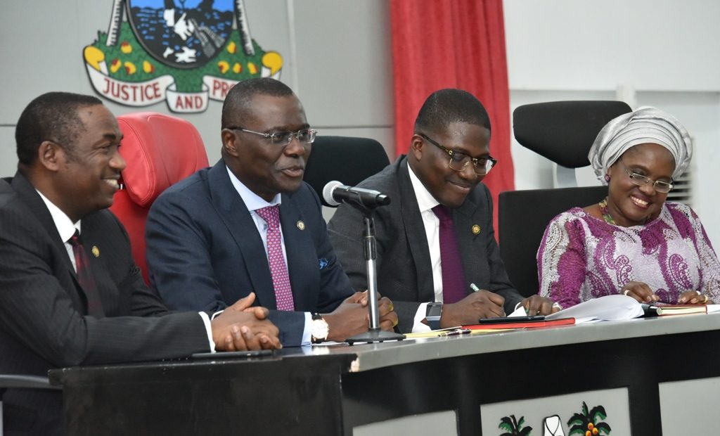 L-R: Deputy Chief Of Staff to the Governor, Mr. Gboyega Soyannwo; Lagos State Deputy Governor, Dr. Obafemi Hamzat; Governor Babajide Sanwo-Olu; Secretary to the State Government (SSG), Mrs. Folasade Jaji and Chief Of Staff (COS), Mr. Tayo Ayinde
