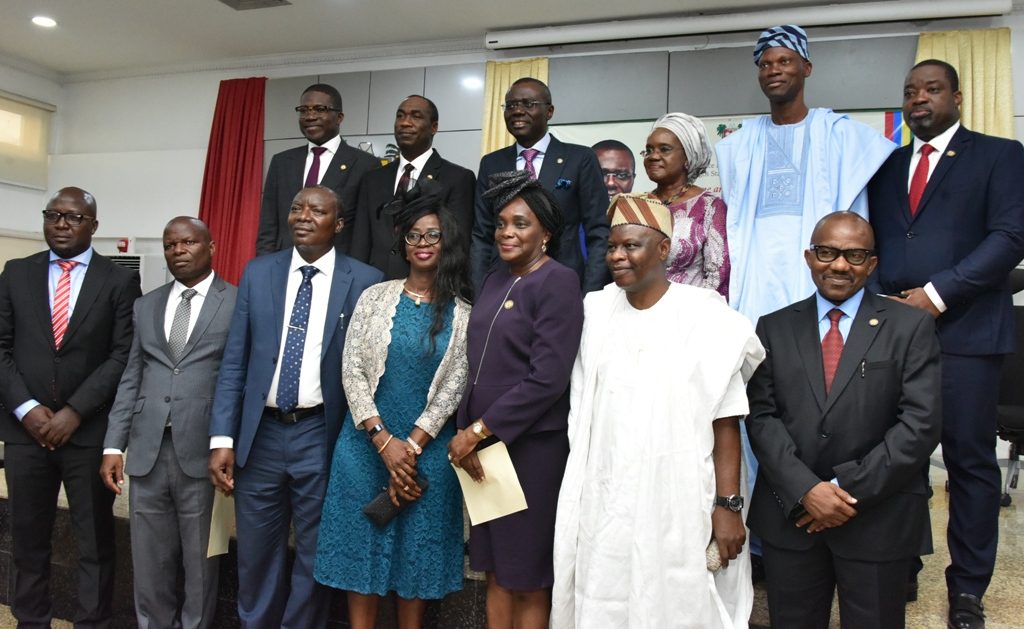 L-R: Newly appointed Permanent Secretaries, Mr. Mustapha Osi-Efa; Mrs. Yewande Falugba; Mr. Wasiu Akewusola; Dr. Eniayemo Ademuyiwa; Mr. Olumide Erinle and Mrs. Okelola Oluwadara