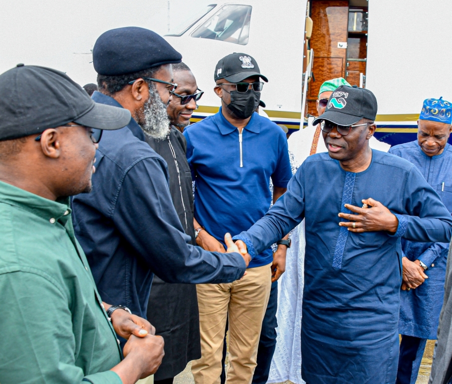 Governor Babajide Sanwo-Olu, on Saturday, returned to Lagos after taking part in the just-concluded All Progressives Congress (APC) special convention held to choose the party’s presidential candidate for the 2023 general elections.