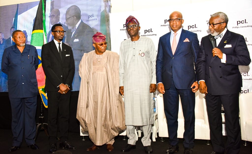 L-R: South Africa Consul-General in Lagos, Mr. Darkey Africa; Managing Director, Phillips Consulting, Mr. Rob Taiwo; Chairman, Honeywell Group, Oba Otudeko; Lagos State Governor, Mr. Babajide Sanwo-Olu; his Ogun State counterpart, Governor Dapo Abiodun and Chairman, Nigeria-South Africa Chamber of Commerce, Mr. Foluso Phillips