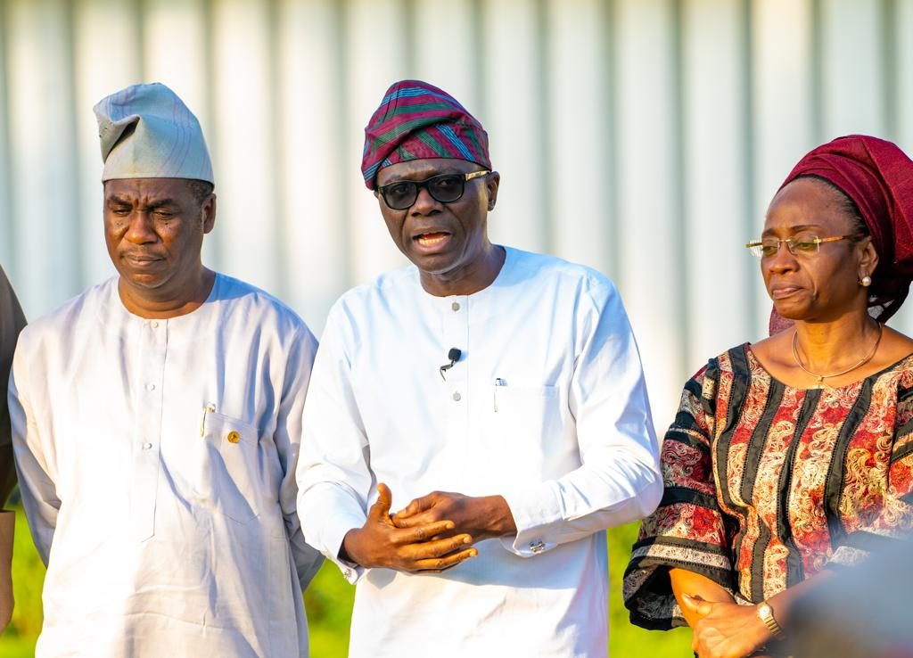 Lagos State Governor, Mr. Babajide Sanwo-Olu, flanked by Deputy Governor, Dr. Obafemi Hamzat (left) and Special Adviser to the Governor on Works and Infrastructure, Engr. (Mrs) Aramide Adeyoye