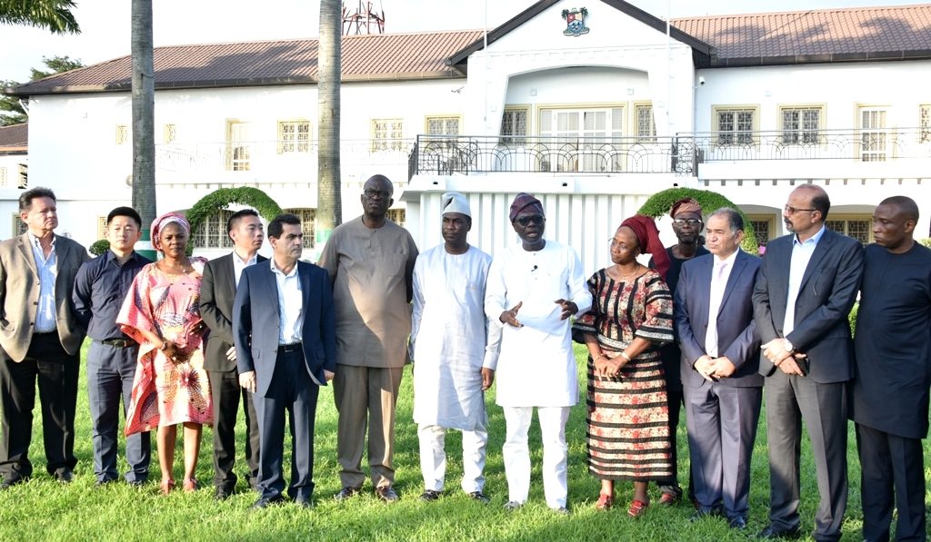 Lagos State Governor, Mr. Babajide Sanwo-Olu, flanked by Deputy Governor, Dr. Obafemi Hamzat (left); Permanent Secretary, Ministry of Works and Infrastructure, Engr. Olujimi Hotonu (second left); Special Adviser to the Governor on Works and Infrastructure, Engr. (Mrs) Aramide Adeyoye (right); Commissioner for the Environment and Water Resources, Mr. Tunji Bello, with Engineering firm