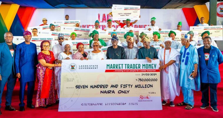 In fulfilment of his promise and demonstration of love to market men and women on Valentine’s Day, Lagos State Governor, Mr Babajide Sanwo-Olu, on Wednesday, flagged off the distribution of N750million financial intervention scheme tagged “Lagos Market Trader Money” for 15,000 beneficiaries.