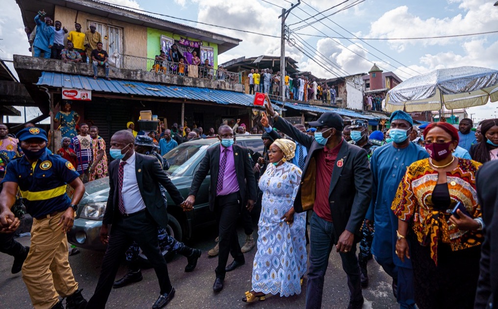 Scores of jubilant residents trooped out in both councils to receive the Governor and his entourage, which comprised the Deputy Governor, Dr. Obafemi Hamzat, members of State Executive Council, and political leaders led by All Progressives Congress (APC) chairman in Lagos, Hon. Tunde Balogun.