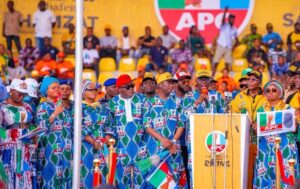 The 10,000-capacity stadium brimmed with APC supporters. They carried banners and chanted slogans to receive the party chieftains and members of the Governorship Campaign Council.
