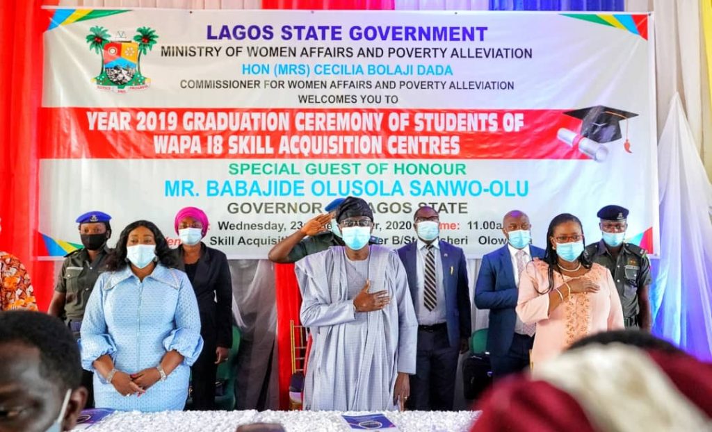 In her address, Lagos State Commissioner of Women Affairs and Poverty Alleviation (WAPA), Mrs. Cecilia Bolaji Dada commended Governor Sanwo-Olu for the unflinching support given to the Ministry of Women Affairs and Poverty Alleviation and to youths and women in general, as well as making the Skill Acquisition Centres tuition free, noting that the platform would make the students self employed and employers of labour.