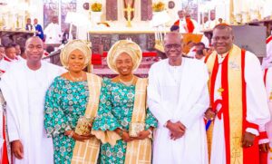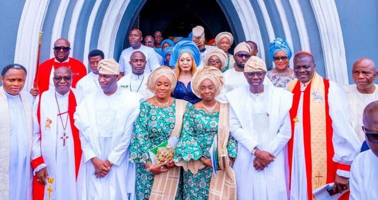 The Governor attended the Thanksgiving Service at the Cathedral Church of Christ, Marina with his wife, Dr. Ibijoke Sanwo-Olu; the Deputy Governor, Dr. Obafemi Hamzat and wife Oluremi Hamzat; the Lagos State All Progressives Congress (APC) Chairman, Pastor Cornelius Ojelabi, former members of the State Executive Council, Body of Permanent Secretaries, traditional, religious and political leaders, among others.