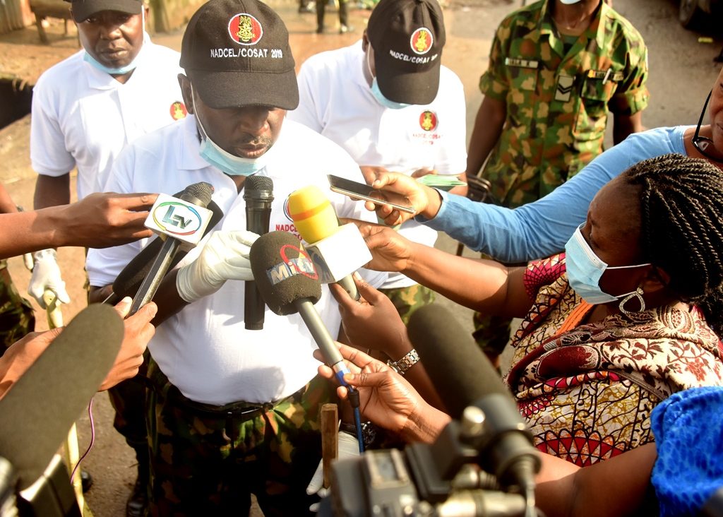 Commander of the 9th Brigade, Brigadier-General Nasir Mohammed Jega speaking with members of the Press