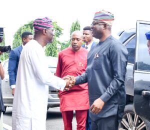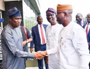 Governor Sanwo-Olu, accompanied by his deputy, Dr. Obafemi Hazmat, received Governors Lucky Aiyedatiwa (Ondo), Dapo Abiodun (Ogun), Seyi Makinde (Oyo), Ademola Adeleke (Osun) and Biodun Oyebanji (Ekiti) at the Lagos House, Ikeja.