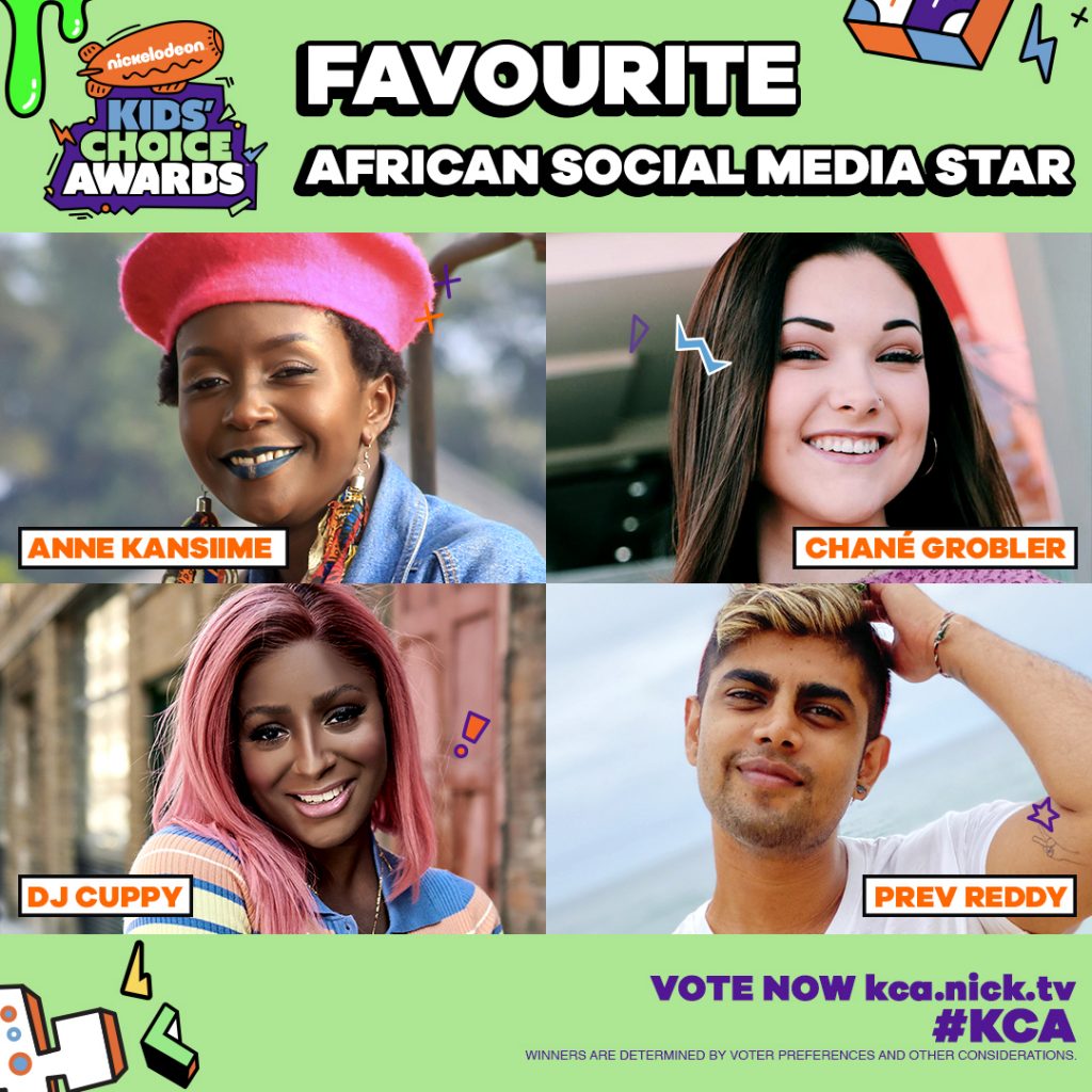 Beginning today, fans can cast their votes on the official Kids’ Choice Awards website, https://kca.nickelodeonafrica.com/.