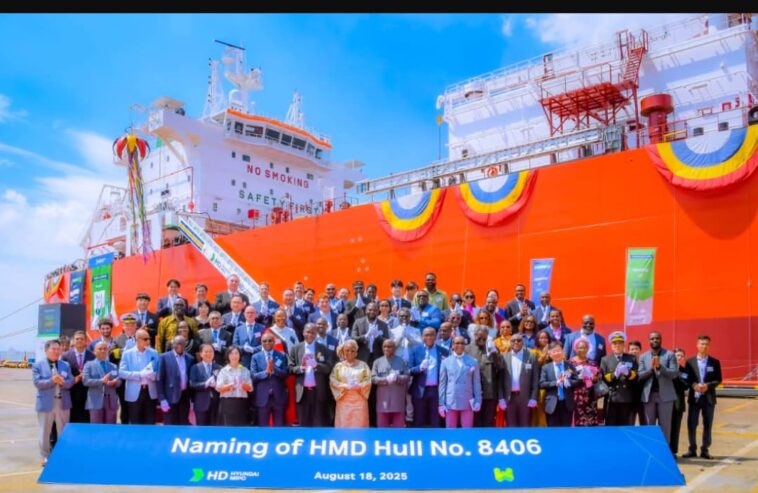 Nigeria took a very bold stride in its journey toward energy independence and continental leadership as President Bola Ahmed Tinubu commissioned WAGL Energy Limited’s 40,000 cubic metres Liquefied Petroleum Gas (LPG) vessel – MT Iyaloja (Lagos) – in Ulsan, South Korea.