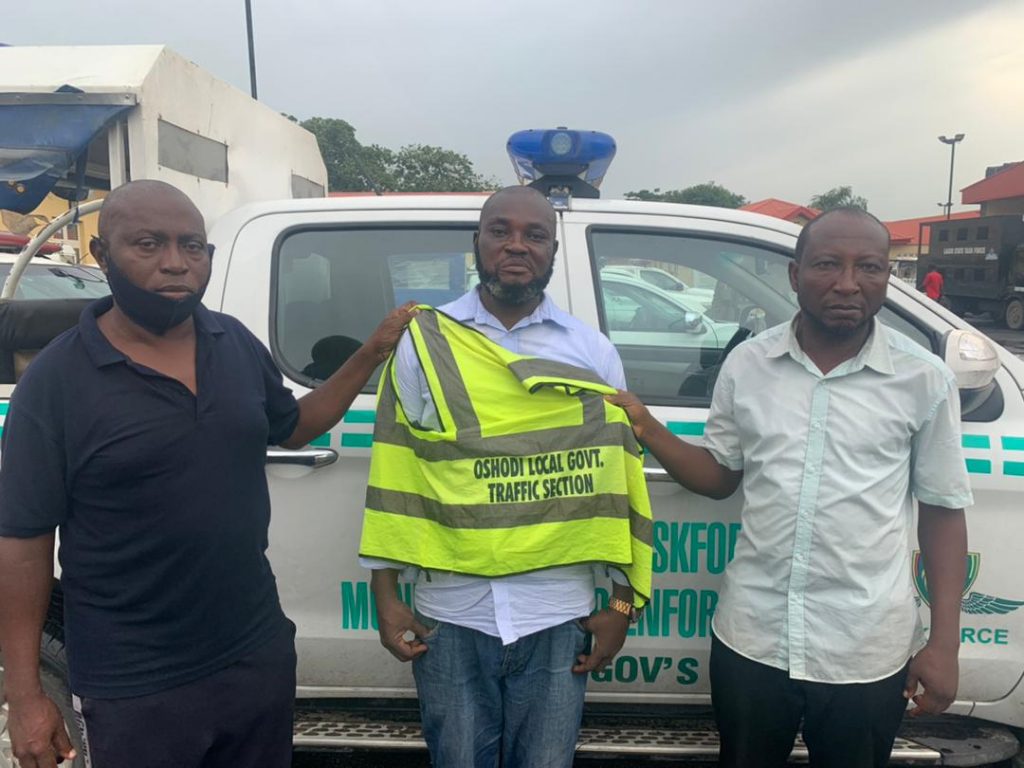 Lagos State Environmental and Special Offences Unit (Taskforce) has arrested three suspects posing as Local Government Traffic officers for extorting motorists in Oshodi.