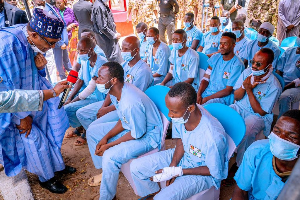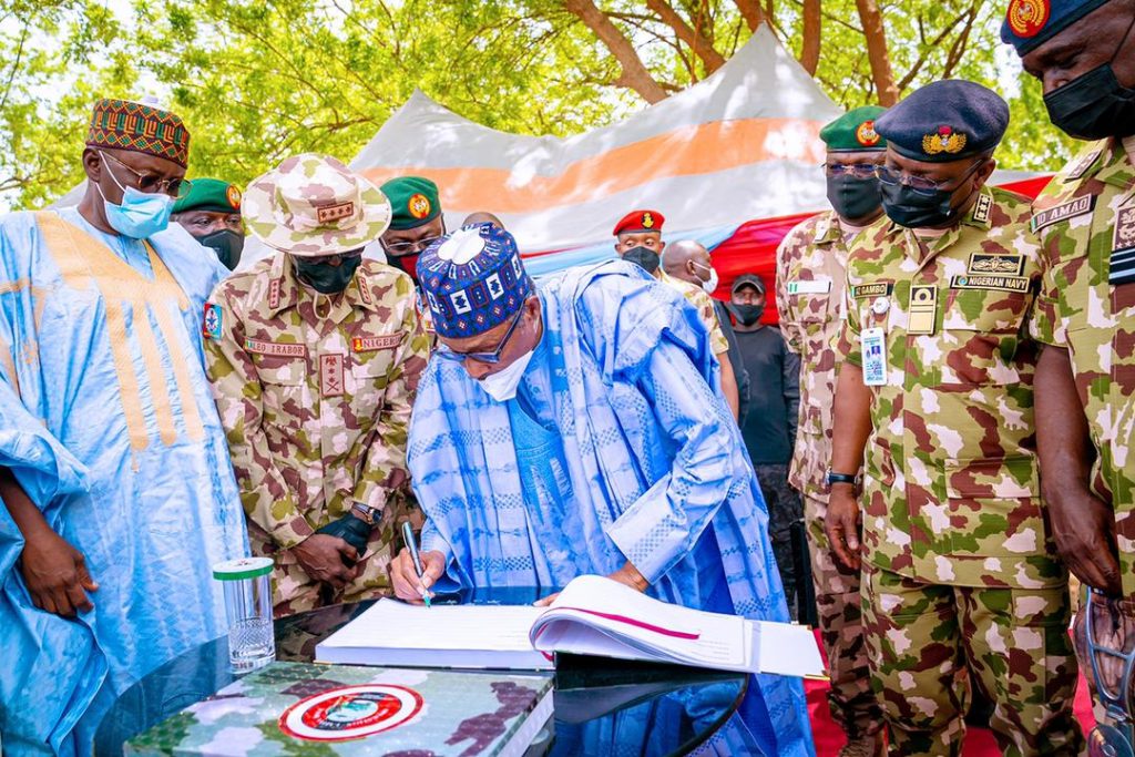 Governors of Borno and Yobe State, Babagana Zulum and Mai Bunu respectively, Chief of Defence Staff, Gen. Leo Irabor, Chief of Army Staff, Maj. Gen Farouk Yahaya, Chief of Naval Staff, Rear Admiral Awwal Gambo, Chief of Staff, Air Vice Marshal Isiaka Amao and National Security Adviser, Maj Gen. Babagana Monguno (rtd), were also at the event.