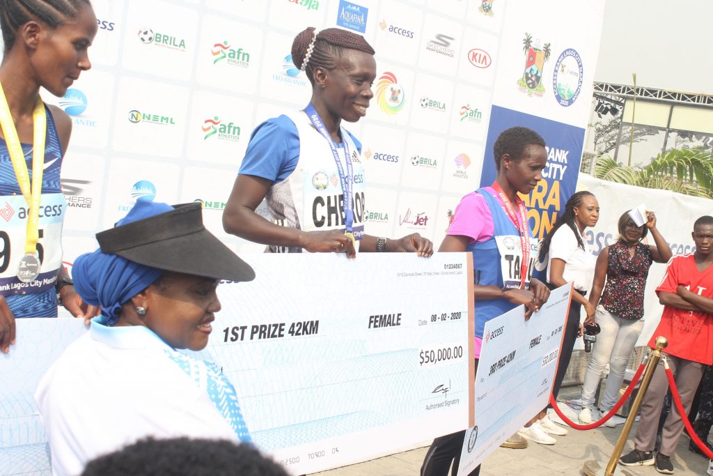 Both male and female first-place finishers of the 42km race received a sum of $50,000 in prize money, while the second and third-place winners received cheques of $40,000 and $30,000 respectively.