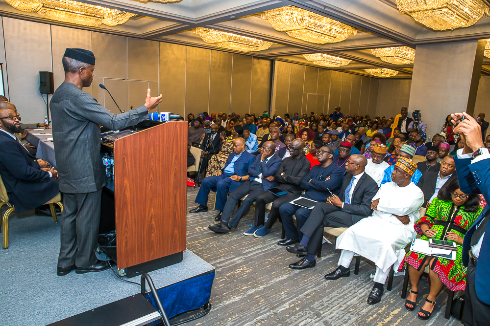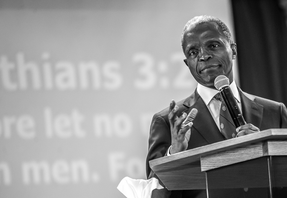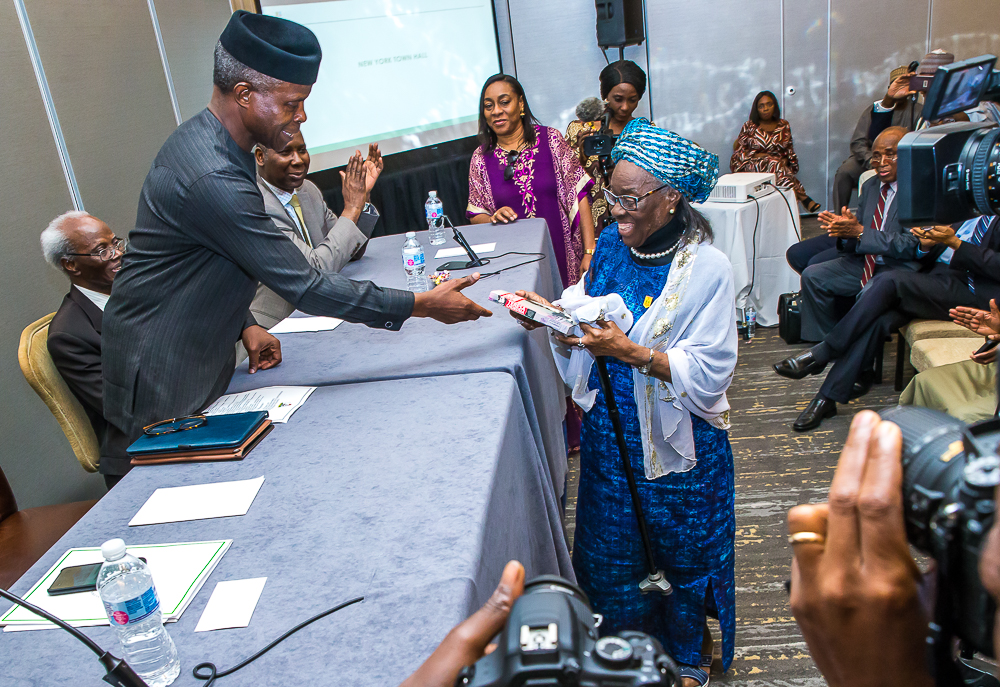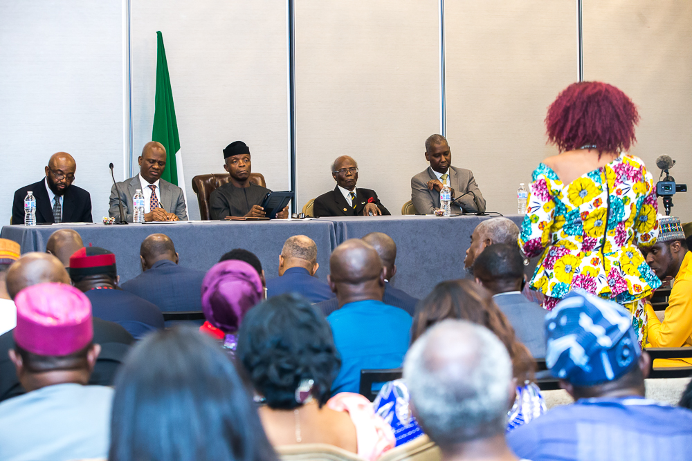 Vice President Yemi Osinbajo, SAN, interacts with the Nigerian community in New York during a Town Hall meeting after attending church service earlier at the RCCG Regional Parish in the city on Sunday, June 23, 2019.